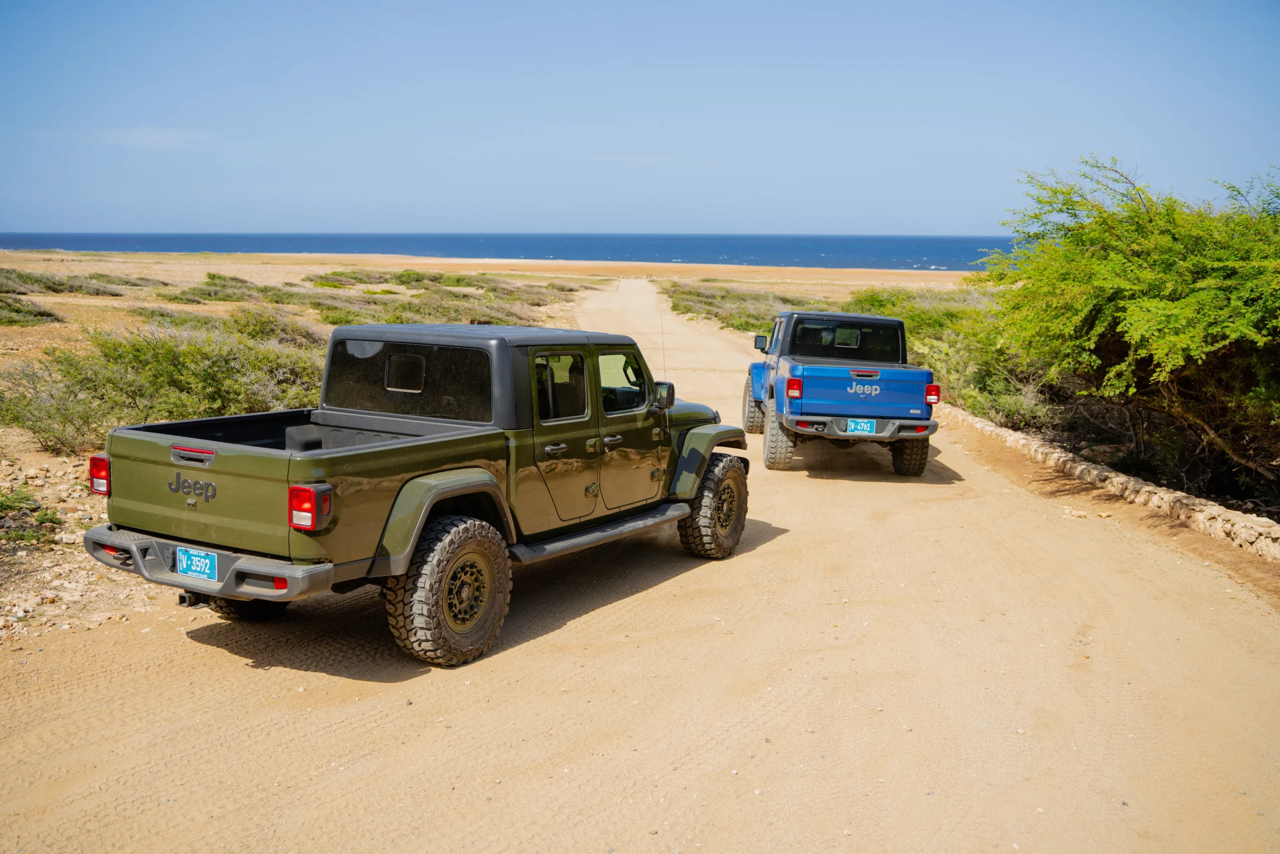 Rent a Jeep Gladiator in Aruba and explore Arikok National Park, the Natural Pool, and off-road trails. Features airconditioning, radio/CD player, power steering, and 4-doors.